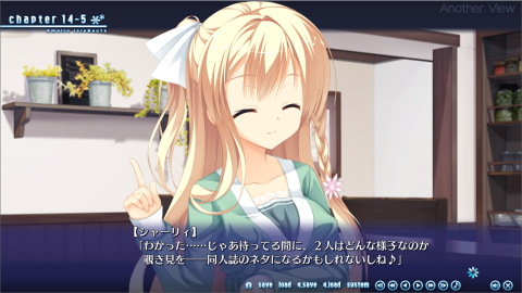 例えば、「(主人公名)のために作ってきました、オナニー用の同人誌」とか「三次は惨事です」とかいうセリフをヒロインが普通に言うので、ニヤニヤが止まらないというか、いろいろもう・・・。