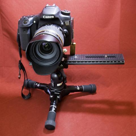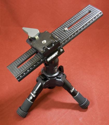 本品を三脚に固定し、大きいつまみを回すことでスライドします。