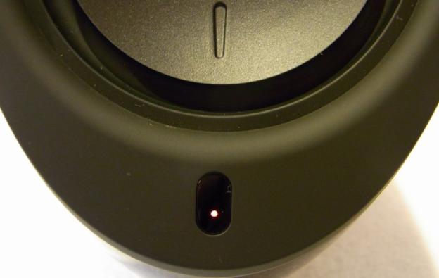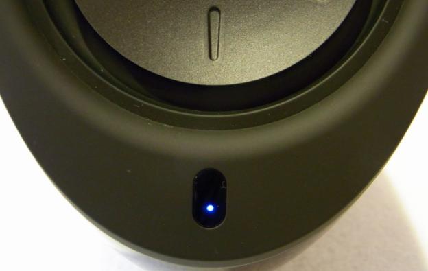 Bluetooth通信が確立されると、スピーカー下部にあるLEDランプの色が赤から青へ切り替わる。