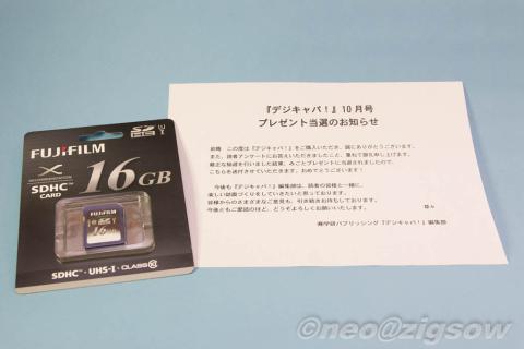 中には「当選のお知らせ」とともに、FUJIFILMのSDHCが入っていた。