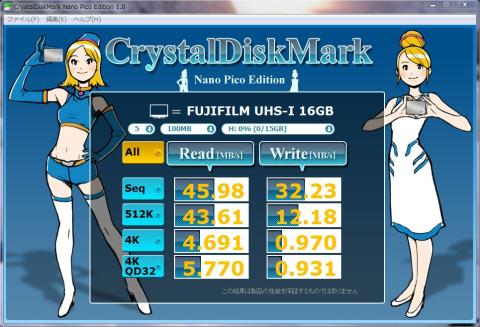 充分速いといえるが、公称値から見ると半分程度に留まっている。
