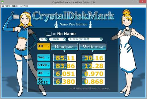 公称の90MB/sにはわずかに届かなかったが、充分な速度だね(^^
