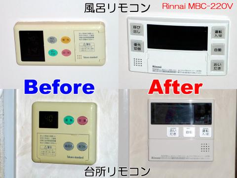 給湯器の交換に伴い、台所&風呂リモコンも交換する事に。