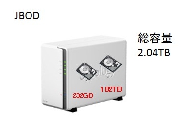容量が違うHDDを2台接続したとき、RAID構成の動作方法を確認してみました。