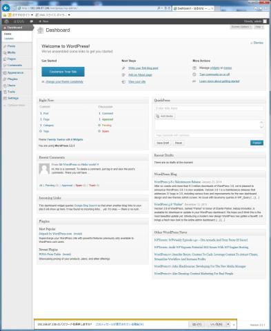 初期の管理画面が表示されます。まずは言語変更をしました。