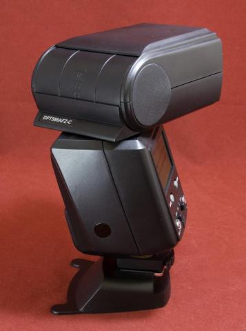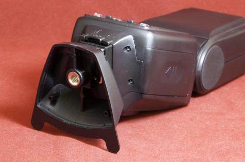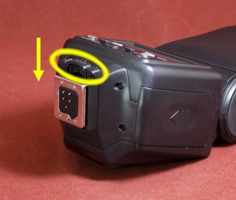 カメラへの接続は、420EXではシューに挿し込んだ後下部のネジを締める方式でしたが、本品ではワンプッシュで固定できます。