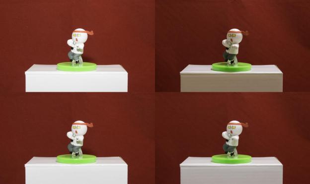 右下:フラッシュ有り、撮影ボックス内でバウンス