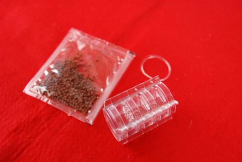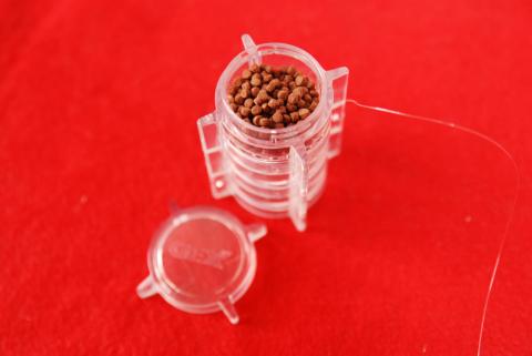 筒状のプラスティックの用器(ばらせる)これと餌、引き出すときに使うテグスだけです