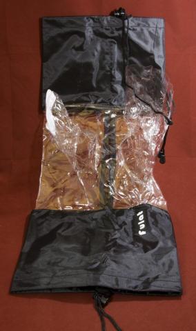 現行品はレンズカバーが黒色のナイロン?になっているようですが、購入したモノはボディー部の透明ビニール地と一緒で固くて先端をレンズに固定するとちゃんと縮まないのでズームレンズがすぐに伸びてしまいます(--;