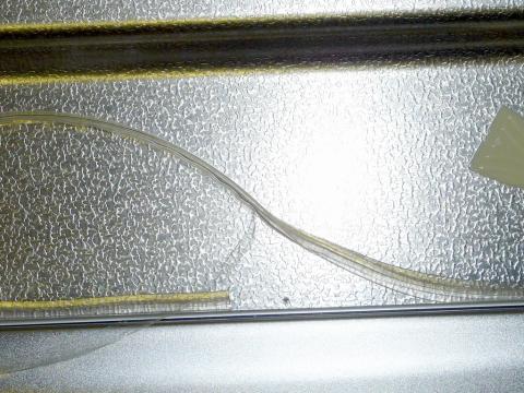 熱で伸びたのか右辺の真ん中辺りにたわみが生じて、そこから剥がれてしまいました。