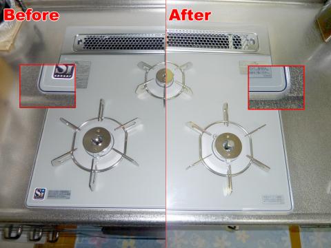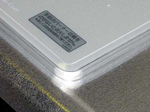 指先や付属のプラ板でテープをコンロに押し付けながら貼り付けていきます。