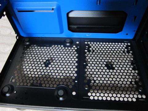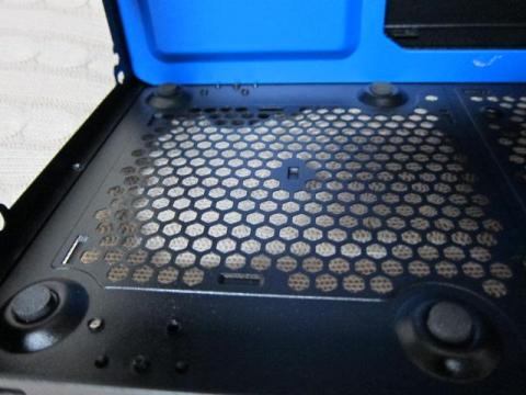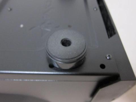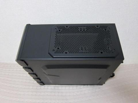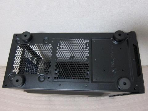 ボトムは,電源ファン用とボトムファン用のメッシュフィルターが装着されています.ただ,このメッシュフィルターは,金属メッシュのみで,フレームがありません.筐体の溝にはめ込みタイプになっていますので,取り外しや管理が少し面倒です.また,カーペット上では,メッシュフィルターが引っかかって外れてしまうこともあります.このボトムファンに関する記述がWEB上にはありません.また,足は4本の丸形のゴムシート付きで,ネジでしっかり固定され,一般のPCケースより高さがあります.