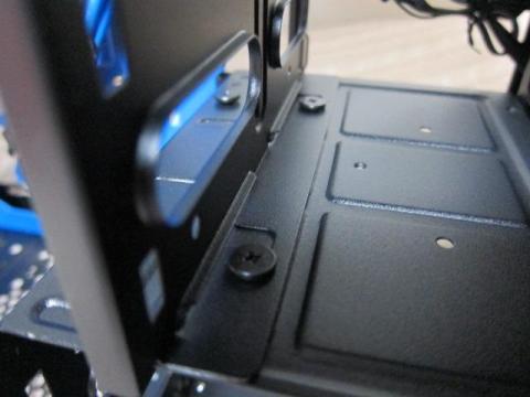 右サイドは,アクリルウインドウ仕様で,インナーカラーのブルーが見えるだけで,ワクワクします.LED電飾も映えそうです.また,サイドパネルは手回しネジで固定されており,開閉も楽な様に専用の取っ手も付いています.この配慮がうれしいです.