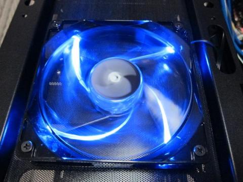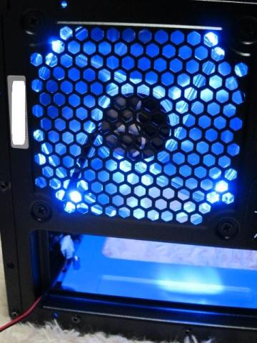 一通り確認が終わったところで,ファンの動作確認というか,ブルーLEDの感じを見ておきます.