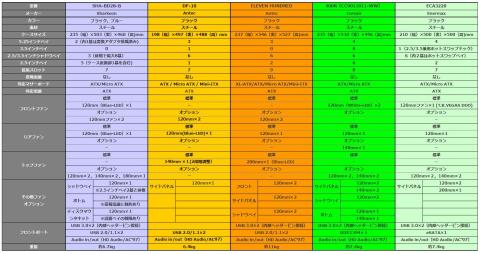 比較するのは,手持ちの静音ケース以外で,似たスペックのものになります.まず,一覧表を作って,比較してみました.