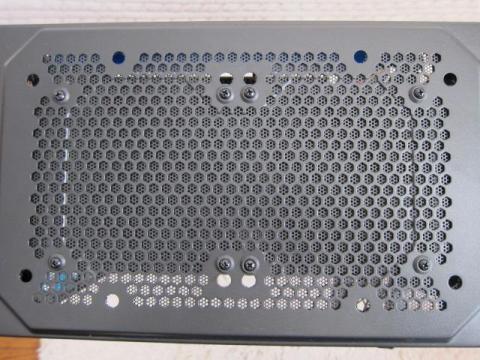 トップは,ファンメッシュがあるだけで,スッキリしています.ファン固定穴には,防振ゴム付きです.このメッシュフィルターは,2重構造で吸気用にも対応できる細かいメッシュが内側にあります.