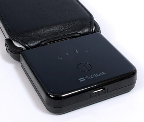 SoftBankの上のボタンを押すことでバッテリーの残量がランプで確認できます。