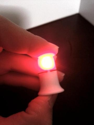 顔が赤く光ります。スイッチを離すと消えます。下にあるのでスイッチが押しづらいので無くても良いのではと思ってしまいました。