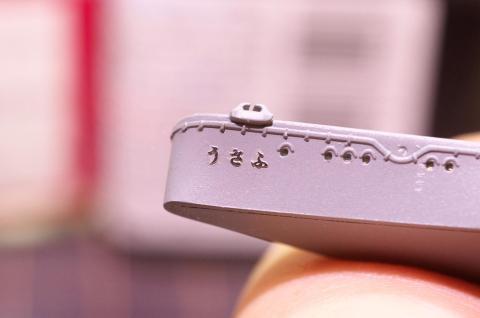 この際、表側のビニールから文字のエッチングパーツが剥がれないようにするのが重要。