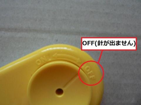 OFFの位置では針は出ません。安全設計ですね(^^)