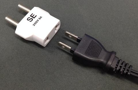 2012年春にヨーロッパに出張した時に予備として持っていったものです。SEタイプは古くからヨーロッパで使用されているそうなのですが、現在では一般的にCタイプが普及しているということなので、出番が無いかもしれないと思いつつ、泊まるホテルが古いSEタイプのままということも考えられるので予備としました。