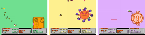 『ファンタジーゾーン』の色彩はそれが特徴でもあるのですが、好き嫌いが出てくる部分でもあると思います。原色系がまったく駄目という人もいますので、ゲーム画面を見ただけで敬遠するユーザーもいたかも知れません。