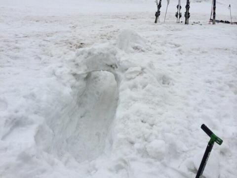 スキー場で子供たちに急かされ急遽滑り台を作りました。