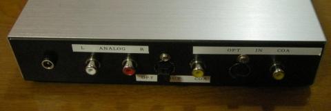 左側から電源、アナログ出力、デジタル出力(光・同軸)、デジタル入力(光・同軸)