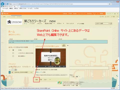 SharePoint上にあるOfficeのデータは、その場で編集することが可能です(*7)。