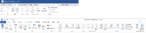 こちらはWord OnlineとWord 2013の[挿入]タブの比較です。このようにWeb上から編集する場合には利用できない機能もあるようですが、そういう時はメニュー上の[WORDで開く]をクリックすると即座に同じファイルをWord2013で開くことが可能です。Word2013で必要な機能を利用した後は上書き保存することで解決できるようになっています。