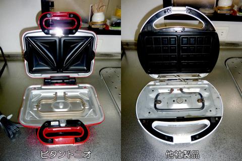 ワッフルプレートの裏を見るとビタントニオの方が電熱線からの熱がプレートにしっかりと伝わるようになっている感じがします。