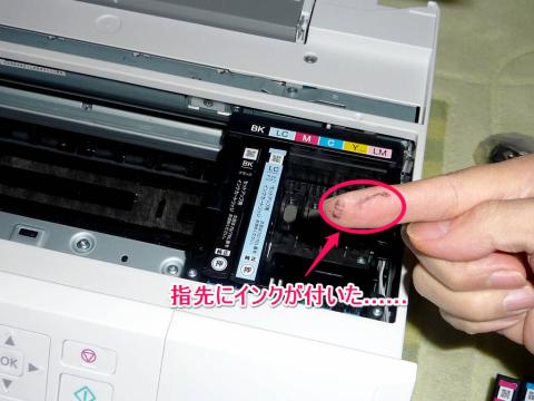 本体にインクセットしようとして、インクカートリッジのキャップ外して取り付けてたら、インクで指先が汚れました……orz