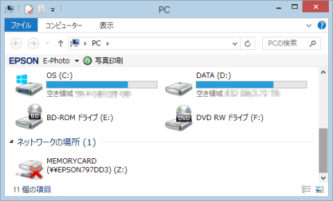 確認してみると、どうやらEP-706Aのメモリーカードスロットにネットワークドライブが割り当てられているようです。