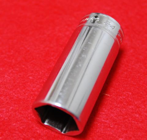 スナップオンの良いところはなんと言っても壊れにくいところです、この24mmソケットですが、レンチの差し込み角が3/8の駒です、普通なら差し込み角1/2を使うのが正当でしょうが、この3/8の駒は大変珍しく、元のオーナーが良く買ったな・・・ていうのが正直な感想です