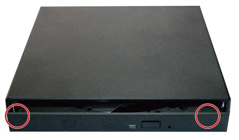 イジェクトしたら、写真の赤丸2箇所にある爪を外します。