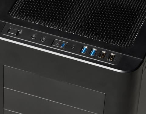 USB3.0×2、USB2.0×2、マイク・スピーカー端子、電源・リセットスイッチがあります。