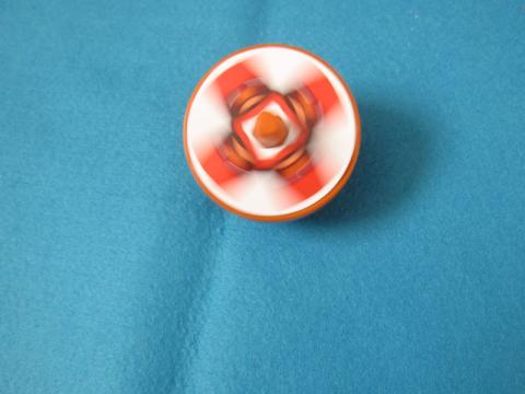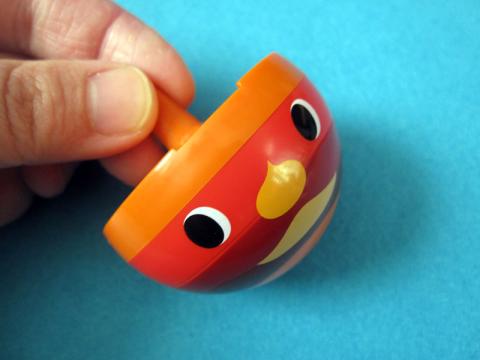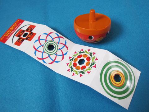 前回から狙っていたようで、娘は迷わずこれを選びました…。コマの方が、ボールよりあっちゃこっちゃと転がらなくて、私としても助かりますね。4種類の差し替えカードがついていて、回ると絵がかわるよ~ と楽しめます。渦巻のは本当に目が回りますw