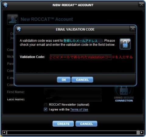 Validationコードが正しく入力されれば、アカウントは利用可能です。