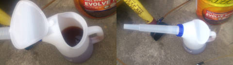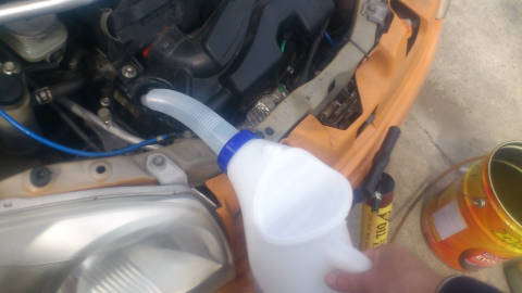 エンジンオイルを投入する時、ノズル長さが微妙に不足し