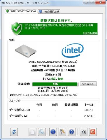 耐久性を比較するために、SSD LIFEのフリー版を使ってみました。