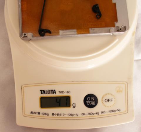 せっかく中を開けてみたので、各々の重さを測ってみました。すこし見ずらいですがご勘弁を。