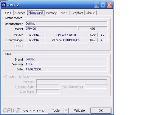 マザーボードはDellのマザーボードですね、チップセットはGeForce6150+nForce410です。