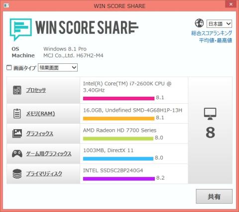 Win7から8にアップグレードしたので、それぞれで評価した。
