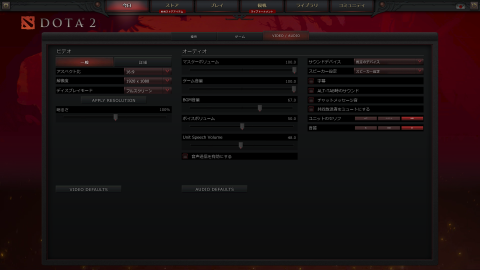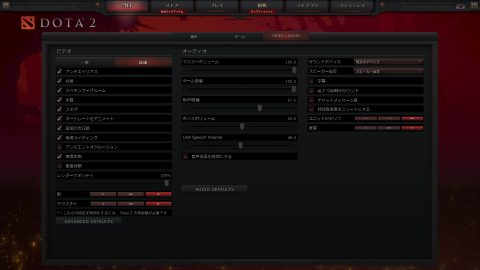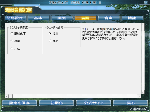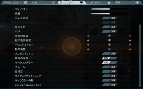 ※設定は初期設定から「ウィンドウモード」の「ウィンドウモード表示」を「フルスクリーン表示」に変更しました。