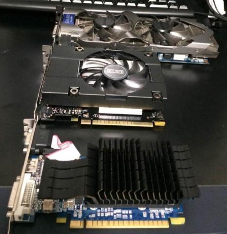 ベンチ台に取り付けてみるとVGAの大きさはPCI-Eのソケットサイズとほぼ同じです。