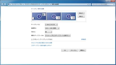 3個の画面を1個の画面として認識させて超ワイドディスプレイとして
