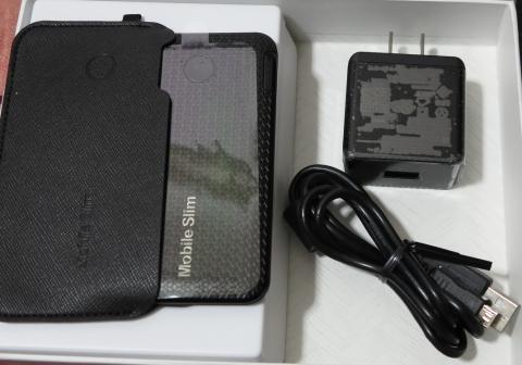 内容物は、ルータ本体+キャリングカバーと充電機に一枚紙の説明書に保証書です。