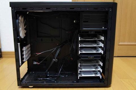 内部もキレイにブラック塗装が施されています。3.5インチドライブも、6基搭載可能です。