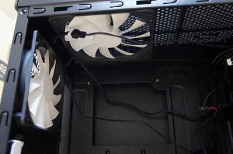 トップカバーです。内部には2つのファンが搭載可能です。このトップカバーも簡単に取り外しができ、全てのカバーを取り外すと、スチールの骨だけになります。