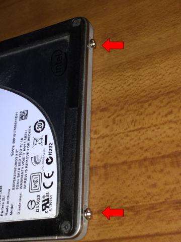 取り付けるHDD(SSD)の側面に付属のねじを4個取り付けます。